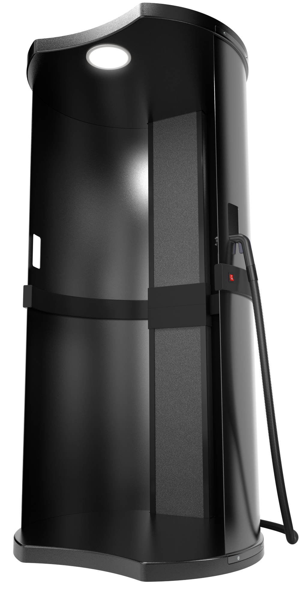 The All in One Tan Booth has 4 fans from top to bottom (most other brands only have 2 or 3!). 4 fans from top to bottom ensures overspray is extracted evenly. The aerodynamic curved chamber funnels extraction, generating airflow into a cyclone. Industry strength extraction via the top and bottom fans extracts the overspray and generates clean air.