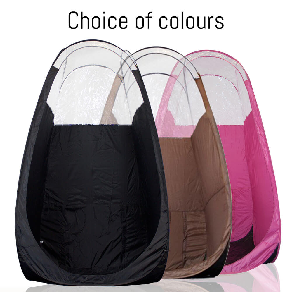 ‘Clear View‘ vinyl windows at shoulder height to allow more of the rooms lighting in while maintaining a level of privacy. Double stitched seams for extra strength with nylon thread. Leak proof stain resistant floor. Extraction fan opening in the rear.